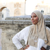 Signature M Confectionné dans un tissu premium, ce hijab se distingue par sa douceur incomparable et sa légèreté naturelle.
