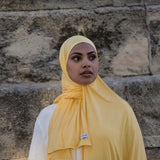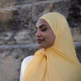 Hijab en jersey de coton avec une touche d’élasthanne, conçu pour allier confort et praticité grâce à sa texture douce, légèrement extensible, qui ne glisse pas et reste bien en place tout au long de la journée – dimensions : 70 x 170 cm